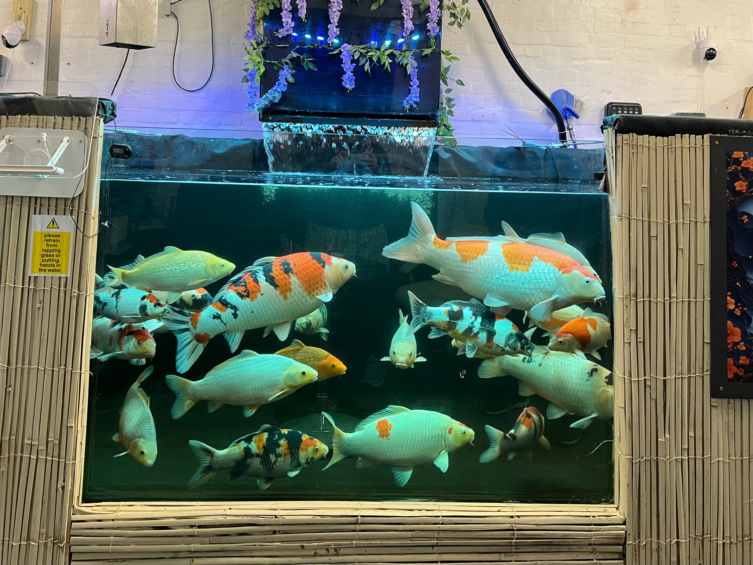 Our showroom currently stocks varieties such as Goshiki Sanke, Doitsu Kohaku, Asagi and Tancho Shiroutsuri, among others.